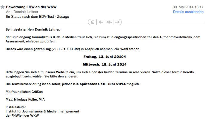 Jetzt, vor meinem Computer, ist all das kein Problem: Ich studiere ab Herbst „Journalismus und Neue Medien“ an der FH Wien, ich bin Journalist bei neuwal.com (und publizier(t)e in anderen Online- und Printmedien) und Autor, wofür ich eben meinen Blog benutze. Das wäre es, nicht mehr (wobei man eben neuwal.com noch näher erklären könnte oder Volle Distanz. Näher zu dir) und nicht weniger. Und doch komme ich mir komisch dabei vor.